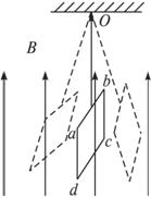 20、如图所示,在磁感应强度大小为B、方向竖直向上的匀强磁场中,有一质量为m、阻值为R的闭合矩形金属线框abcd用绝缘轻质细杆悬挂在O点,并可绕O点摆动。金属线框从右侧某一位置静止开始释放,在摆动到左侧最高点的过程中,细杆和金属线框平面始终处于同一平面,且垂直纸面。则线框中感应电流的方向是( )
