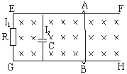 21、图中EF、GH为平行的金属导轨,其电阻可不计,R为电阻器,C为电容器,AB为可在EF和GH上滑动的导体横杆。有均匀磁场垂直于导轨平面。若用I1和I2分别表示图中该处导线中的电流,则当横杆AB( )