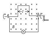 26.将硬导线中间一段折成不封闭的正方形,每边长为l,它在磁感应强度为B、方向如图的匀强磁场中匀速转动,转速为n,导线在a、b两处通过电刷与外电路连接,外电路有额定功率为P的小灯泡并正常发光,电路中除灯泡外,其余部分的电阻不计,灯泡的电阻应为