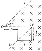 29、如图所示,LOO′L′为一折线,它所形成的两个角∠LOO′和∠OO′L′均为45°。折线的右边有一匀强磁场,其方向垂直于纸面向里。一边长为l的正方形导线框沿垂直于OO′的方向以速度v作匀速直线运动,在t=0时刻恰好位于图中所示位置。以逆时针方向为导线框中电流的正方向,在下面四幅图中能够正确表示电流-时间(I-t)关系的是(时间以l/v为单位)