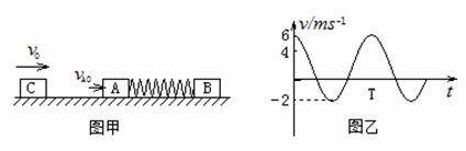 ⑴在C与A接触前,当A的速度分别为6m/s、2m/s、–2m/s时,求对应状态下B的速度,并在此基础上在图乙中粗略画出B的速度随时间变化图像;