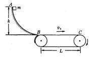 17.如图所示,一质量为m的滑块从高为h的光滑圆弧形槽的顶端A处无初速度地滑下,槽的底端B与水平传送带相接,传送带的运行速度为v0,长为L,滑块滑到传送带上后做匀加速运动,滑到传送带右端C时,恰好被加速到与传送带的速度相同.(12分)