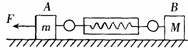 (山东省潍坊市2008届教学质量检测)放在粗糙水平面上的物块A、B用轻质弹簧秤相连,如图所示,物块与水平面间的动摩擦因数均为μ,今对物块A施加一水平向左的恒力F,使A、B一起向左匀加速运动,设A、B的质量分别为m、M,则弹簧秤的示数( )