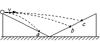 横截面为直角三角形的两个相同斜面如图紧靠在一起,固定在水平面上,它们的竖直边长都是底边长的一半。小球从左边斜面的顶点以不同的初速度向右平抛,最后落在斜面上。其中有三次的落点分别是a、b、c。下列判断正确的是
