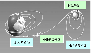 11.据新华网报道,在2008年11月5日前后,嫦娥一号迎来奔月旅程的最关键时刻--实施首次“刹车”减速。在接近月球时,嫦娥一号将要利用自身的火箭发动机点火减速,以被月球引力俘获进入绕月轨道。这次减速只有一次机会,如果不能减速到一定程度,嫦娥一号将一去不回头离开月球和地球,漫游在更加遥远的深空;如果过分减速,嫦娥一号则可能直接撞击月球表面。该报道的图示如下。则下列说法正确的是··························( )