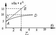 19、质量为40kg的雪撬在倾角θ=37°的斜面上向下滑动(如图甲所示),所受的空气阻力与速度成正比。今测得雪撬运动的v-t图象如图乙所示,且AB是曲线的切线,B点坐标为(4,15),CD是曲线的渐近线。根据以上信息,不可以确定下列哪个物理量( )