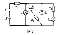 18.如图所示,电动势为E、内阻等于R1的电源与三个灯泡和三个电阻相接,只合上开关S1,三个灯泡都能正常工作,如果再合上S2,则下列表述正确的是( )