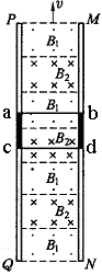 =2m,两磁场的宽度均与金属框的边长Lac相同,金属框整个回路的电阻R=9.5×10-4Ω,假如设计要求电梯以v1=10m/s的速度向上匀速运动,取g=10m/s2,那么,