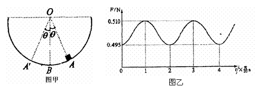 A、A′点与O点连线与竖直方向之间夹角相等且都为θ,均小于10°,图乙表示滑块对器壁的压力F随时间t变化的曲线,且图中t=0为滑块从A点开始运动的时刻.