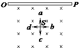 如图所示,OP为足够长的水平挡板,其下方有垂直纸面向里的匀强磁场,磁场范围足够大。S为一质子源,它可以向a、b、c、d四个垂直磁场的方向发射速率相同的质子,ac垂直于OP,bd平行于OP。不计质子重力,则最有可能击中挡板的是( )