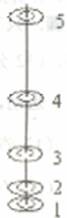 4. 取一根长2 m左右的细线,5个铁垫圈和一个金属盘.在线端系上第一个垫圈,隔12 cm再系一个,以后垫圈之间的距离分别为36 cm、60 cm、84 cm,如图所示.站在椅子上,向上提起线的上端,让线自由垂下,且第一个垫圈紧靠放在地上的金属盘.松手后开始计时,若不计空气阻力,则第2、3、4、5各垫圈