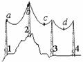 2008年1月份,我国南方大部分地区遭遇50年不遇的大雪灾,高压输电线路大面积受损,冻雨使输电线表面结冰,重力增大,导致线断塔倒。如图所示的四座铁塔,两塔之间的输电线长度相等,2号铁塔在山顶,1、3、4号铁塔在山下且等高,a、b、c、d四点中,c、d两点分别是2、3号塔和3、4号塔间电线的最低点,3号塔两侧导线端点切线与竖直方向夹角均为θ。下列说法正确的是( )
