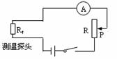 通常情况下,电阻的阻值会随温度的变化而改变,利用电阻的这种特性可以制成电阻温度计,从而用来测量较高的温度。如图所示,电流表量程为0-25mA,电源电动势为3V,内阻不计。R为滑动变阻器,电阻Rt作为温度计的测温传感器。当t≥0℃时,Rt的阻值随温度t的变化关系为Rt=20+0.5t(单位为Ω)。先把Rt放入0℃环境中,闭合电键S,调节滑动变阻器R,使电流表指针恰好满偏,然后把测温探头Rt放到某待测温度环境中,发现电流表的示数为10mA,该环境的温度为__________℃;当把测温探头Rt放到480℃温度环境中,电路消耗的电功率为__________W[h4] 。