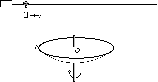 如图所示,P是水平放置的足够大的圆盘,绕经过圆心O点的竖直轴匀速转动,在圆盘上方固定的水平钢架上,吊有盛水小桶的滑轮带动小桶一起以v=0.2m/s的速度匀速向右运动,小桶底部与圆盘上表面的高度差为h=5 m.t=0时,小桶运动到O点正上方且滴出第一滴水,以后每当一滴水刚好落在圆盘上时桶中恰好再滴出一滴水,不计空气阻力,取g=10 m/s2,若要使水滴都落在圆盘上的同一条直径上,圆盘角速度的最小值为