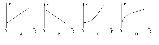 t分别表示某段位移s内的初速度和末速度.当物体做“另类匀加速直线运动”时,物体运动的v-t图像是图中的