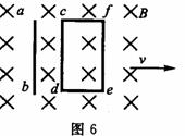 7.如图6所示,由导体棒ab和矩形线框cdef组成的“10”图案在匀强磁场中一起向右匀速平动,匀强磁场的方向垂直线框平面向里,磁感应强度B随时间均匀增大,则下列说法正确的是 ( )