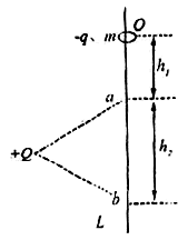 如图所示,L为竖直、固定的光滑绝缘杆,杆上o点套有一质量为m、带电量为-q的小环,在环的左侧固定一电荷为+Q的点电荷,杆上a、b两点到+Q的距离相等,oa之间距离为h1,ab之间距离为h2,使小环从图示位置的o点由静止释放后,通过a点的速率为