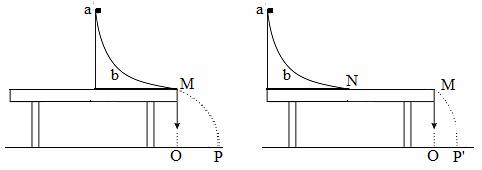 的滑块(可视为质点),b是可以固定于桌面的滑槽(滑槽末端与桌面相切)。第一次实验时,将滑槽固定于水平桌面的右端,滑槽的末端与桌面的右端M对齐,让滑块