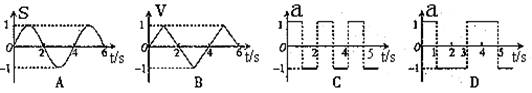设物体运动的加速度为a、速度为v、位移为s。现有四个不同物体的运动图象如图所示,物体C和D的初速度均为零,则其中表示物体做单向直线运动的图象是:
