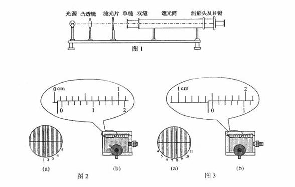 (1)在《用双缝干涉测光的波长》实验中,将双缝干涉实验仪按要求安装在光具座上(如图1),并选用缝间距d=0.2mm的双缝屏。从仪器注明的规格可知,像屏与双缝屏间的距离L=700mm。然后,接通电源使光源正常工作。