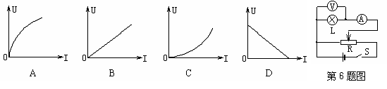 6.为探究小灯泡L的伏安特性,连好图示的电路后闭合开关,通过移动变阻器的滑片,使小灯泡中的电流由零开始逐渐增大,直到小灯泡正常发光。由电流表和电压表得到的多组读数描绘出的U-I图像应该是