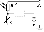 为光敏电阻,光照时电阻很小,R为变阻器(处于阻值较大的状态),L为小灯泡。则