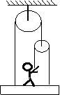 4、 如图所示,人重600 N,平板重400 N,如果人要拉住平板,他必须