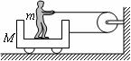 9.如图所示,光滑水平地面上的小车质量为M,站在小车水平底板上的人质量为m。人用一根跨过定滑轮的绳子拉小车,定滑轮上下两侧的绳子都保持水平,不计绳与滑轮之间的摩擦。在人和车一起向右加速运动的过程中,下列说法正确的是( )