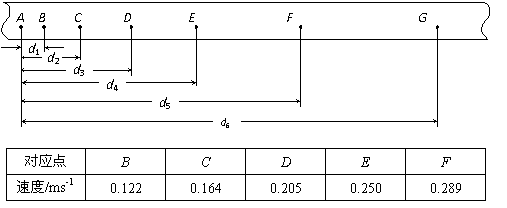 Ⅱ(12分) 在“探究小车速度随时间变化规律”的实验时,某同学得到一条用打点计时器打下的纸带如图所示,并在其上取A、B、C、D、E、F、G等7个计数点,每相邻两个计数点间还有4个点,图中没有画出,打点计时器接周期为T=0.02s的低压交流电源。他经过测量和计算得到打点计时器打下B、C、D、E、F各点时小车的瞬时速度,记录在下面的表格中。