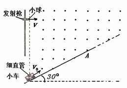 的初速度从斜面底端上滑至2.7m的A处时,小球恰好落入管中且与管壁无碰撞,此时小球的速率是小车速率的两倍。取