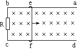 如图所示,在一均匀磁场中有一U形导线框abcd,线框处于水平面内,磁场与线框平面垂直,R为一电阻,ef为垂直于ab的一根导体杆,它可在ab、cd上无摩擦地滑动。杆ef及线框中导线的电阻都可不计。开始时,给ef一个向右的初速度,则