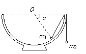 12.如图所示,一个半球形的碗放在桌面上,碗口水平,O点为其球心,碗的内表面及碗口是光滑的。一根细线跨在碗口上,线的两端分别系有质量为m1和m2的小球,当它们处于平衡状态时,质量为m1的小球与O点的连线与水平线的夹角为α=60°。两小球的质量比m2/m1为