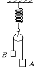 如图所示,弹簧下端悬一滑轮,跨过滑轮的细线两端系有A、B两重物, mB=3kg, A的质量不确定。两物体都悬空,均可上下运动。不计线、滑轮质量及摩擦,则A、B两重物在运动过程中,弹簧的示数可能为:(g=10m/s2)