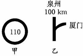 线指示标志,表示到泉州还有100 km.上述两个数据