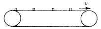 如图所示,一足够长的水平传送带以恒定的速度v运动,每隔时间T轻轻放上相同的物块,当物块与传送带相对静止后,相邻两物块的间距大小
