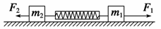 如图2所示,两个质量分别为m1=2 kg、m2=3 kg的物体置于光滑的水平面上,中间用轻质弹簧秤连接.两个大小分别为F1=10 N、F2=5 N的水平拉力分别作用在m1、m2上,则