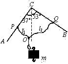 如图,ACB是一光滑的,足够长的,固定在竖直平面内的“∧”形框架,其中CA、CB边与竖直方向的夹角分别为37°和53°。P、Q两个轻质小环分别套在CA、CB上,两根细绳的一端分别系在P、Q环上,另一端和一绳套系在一起,结点为O。将质量为m的钩码挂在绳套上,OP、OQ两根细绳拉直后的长度分别用l1、l2表示,受到的拉力分别用F1和F2表示,下列说法正确的是( )