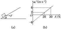 如图(a)所示,用一水平外力F推着一个静止在倾角为θ的光滑斜面上的物体,逐渐增大F,物体做变加速运动,其加速度a随外力F变化的图象如图(b)所示,若重力加速度g取10 m/s2.根据图(b)中所提供的信息不能计算出 ( )