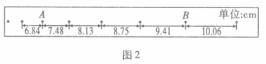 实验时,木块在重物牵引下向右运动,重物落地后,木块继续向右做匀减速运动,图2给出了重物落地后打点计时器打出的一段纸带,图2中小黑点代表计数点,每框邻两计数点间还有4个点(图中未标出),各计数点间的距离如图2所示(单位为厘米)。打点计时器所用交流电频率为50Hz,g=10m/s2,不计纸带与木块间的拉力。