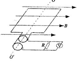 轴匀速转动.今在发电机的输出端接一个电阻R和理想电压表,并让线圈每秒转25圈,读出电压表的:示数为10V。已知R=10Ω,线圈电阻忽略不计,下列说法正确的是 ( )