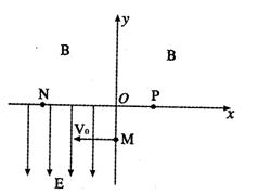 12.(22分)如图所示,在直角坐标系的第一、二象限内有垂直于纸面的匀强磁场,第三象限内有沿y轴负方向的匀强电场,第四象限内无电场和磁场。质量为m、带电量为q的粒子从M点以速度v0沿x轴负方向进入电场,不计粒子重力的影响,粒子经x轴上的N点和P点最后又回到M点。设OM =L,ON=2L,求: