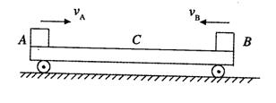 (2)(10分)如图所示,平板小车C静止在光滑的水平面上。现有A、B两个小物体从小车C的两端同时水平地滑上小车,初速度的大小分别为vA =1.2 m/s,