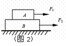 7.如图(2)所示,物体A和B叠放在光滑水平面上,在水平拉力F1=6 N,F2=12 N的作用下一起加速运动,物体A和B保持相对静止.若mA=4 kg,mB=6 kg,则A与B所受的摩擦力f1和f2的大小和方向为( )