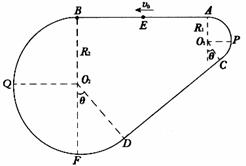 金属杆组成:水平直轨AB,半径分别为R1=1.0m和R2=3.0m的弧形轨道APC和BQD,倾斜直轨 CD长为L=6m,AB、CD与两圆形轨道相切,其中倾斜直轨CD部分表面粗糙,动摩 擦因数为