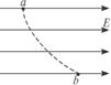 一带电粒子沿图所示的曲线穿过匀强电场,重力不计.关于粒子带何种电荷以及该粒子在a、b两点动能的大小,下列结论正确的是( )