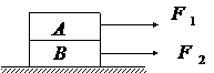 如图,长方体木块A、B质量相同,叠放在光滑水平地面上,在恒力F1、F2共同作用下,木块A、B相对静止并一起向右加速运动,已知F1>F2,关于B受到的摩擦力F,下列说法中正确的是