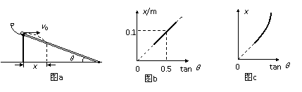 (6分)如图a是研究小球在斜面上平抛运动的实验装置,每次将小球从弧型轨道同一位置静止释放,并逐渐改变斜面与水平地面之间的夹角θ,获得不同的射程x,最后作出了如图b所示的x-tanθ图象,则: