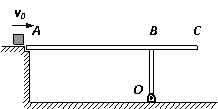 ,OB的长度h=0.5m。现有一质量为m=2kg的钢块(可看成质点)以v0=3m/s的水平初速度滑上AC板,钢块与板间动摩擦因数μ=0.5。试分析:T型支架会不会绕O轴翻转?