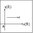 (14分)如图所示,在一光滑平面上一长为L=20cm轻绳一端固定于O点,另一端连一质量为0.05kg的小滑块。滑块的初始位置在A点,A点与O点距离等于绳长。即LOA=L。现给滑块一大小为1.2m/s,方向正北的初速度v0,已知滑块在运动过程中受到一大小为0.72牛,方向水平正东的恒定风力F。求: