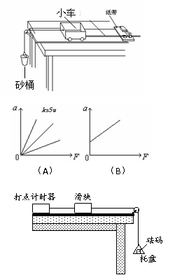 (2)右图为验证牛顿第二定律的实验装置图,实验中作出了如图所示的A、B两图象,图A中三线表示实验中______________________不同.图B中图线不过原点的原因是_____________________.